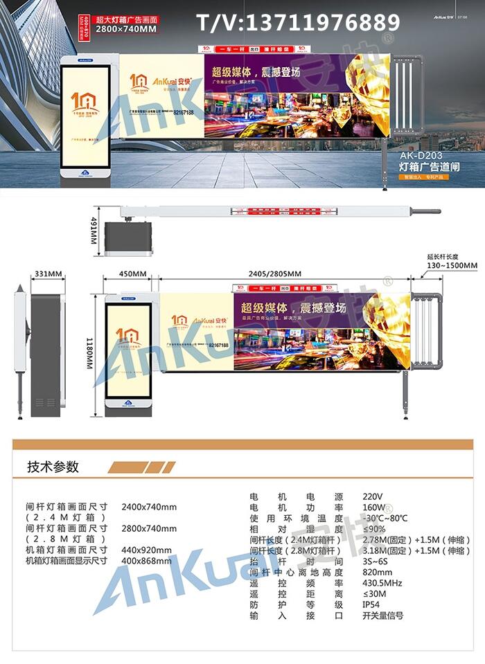 一、D203小区卡布灯箱广告道闸参数:
