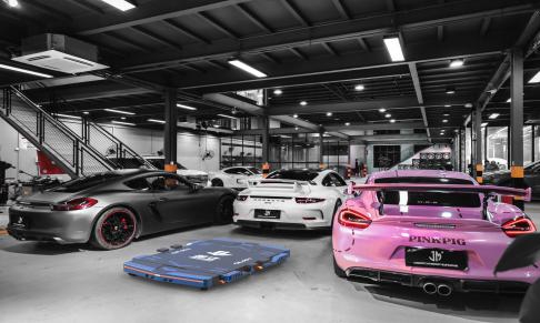移车机器人主要由托盘、旋转支撑、升降机构、小车底盘组成,移车时可以直接开到底盘下方,旋转支撑臂,调节升降托到汽车底盘换胎千斤顶支撑点,举升汽车底盘轮子离开地面,就可以移车到指定位置。