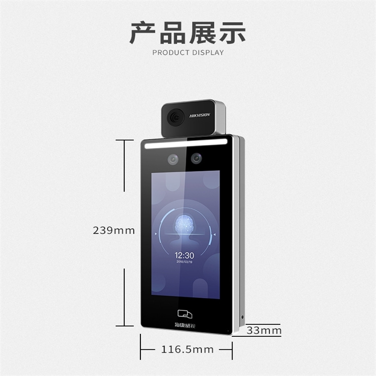 海康威视DS-K1T671TM-3XF壁挂式测温一体机,远距离非接触、非配合式测温。采用高灵敏度氧化钒非制冷探测器,实时探测周围物体发出的热辐射,当人员进行身份核验时,可进行人体面部区域精准温度检测,并将温度与人员信息进行关联,可广泛应用于医院、车站、园区、场馆、工厂等场景,实现人员权限管理及体温监控,有效满足防疫防控要求。