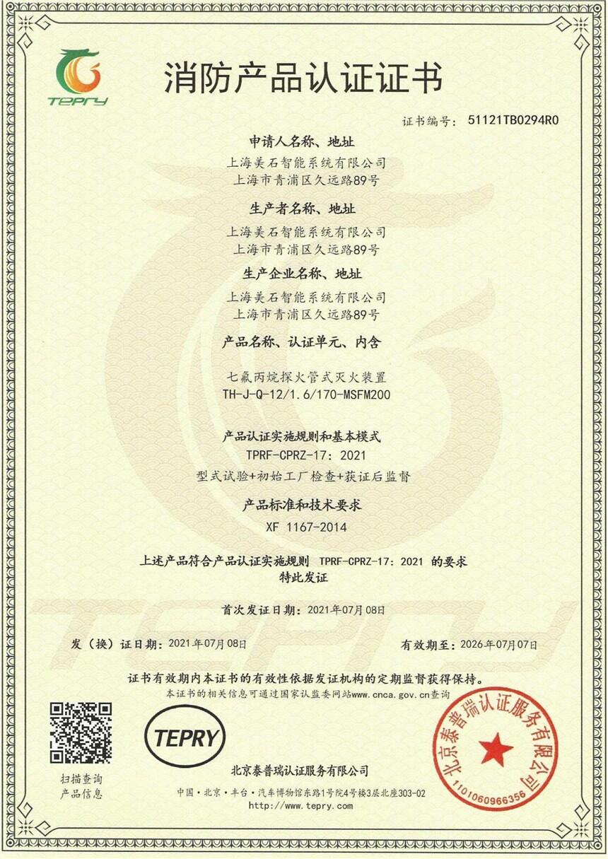 上海美石智能系统有限公司,是经上海市人民政府批准2013年8月1日成立的科技股份制企业,专注于研发制造感温自启动灭火装置,高压二氧化碳灭火系统、MS1230全氟己酮环保气体灭火系统、七氟丙烷灭火系统、IG541灭火系统,厨房自动灭火装置、柜式灭火系统、智能消防火灾报警系统等,通过部天津消防研究所检测认证。致力于为石油化工、煤矿风电、电力通信、交通运输、机械制造等电气设备众多行业提供现代化、自动化、智能化防火灭火安全服务,是中国感温自启动灭火系统装置的企业之一。