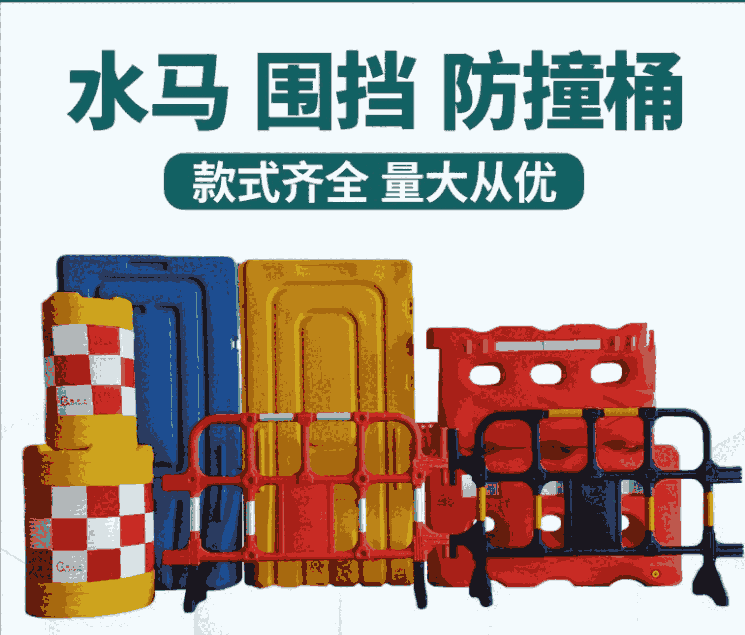 水马是一种用于分割路面或形成阻挡的塑制壳体障碍物,通常是上小下大的结构,上方有孔以注水增重,部分水马还有横向的通孔以便通过杆件连接以形成更长的阻挡链或阻挡墙。一般用于道路交通设施,在高速路、城市道路、及天桥街道路口常见。