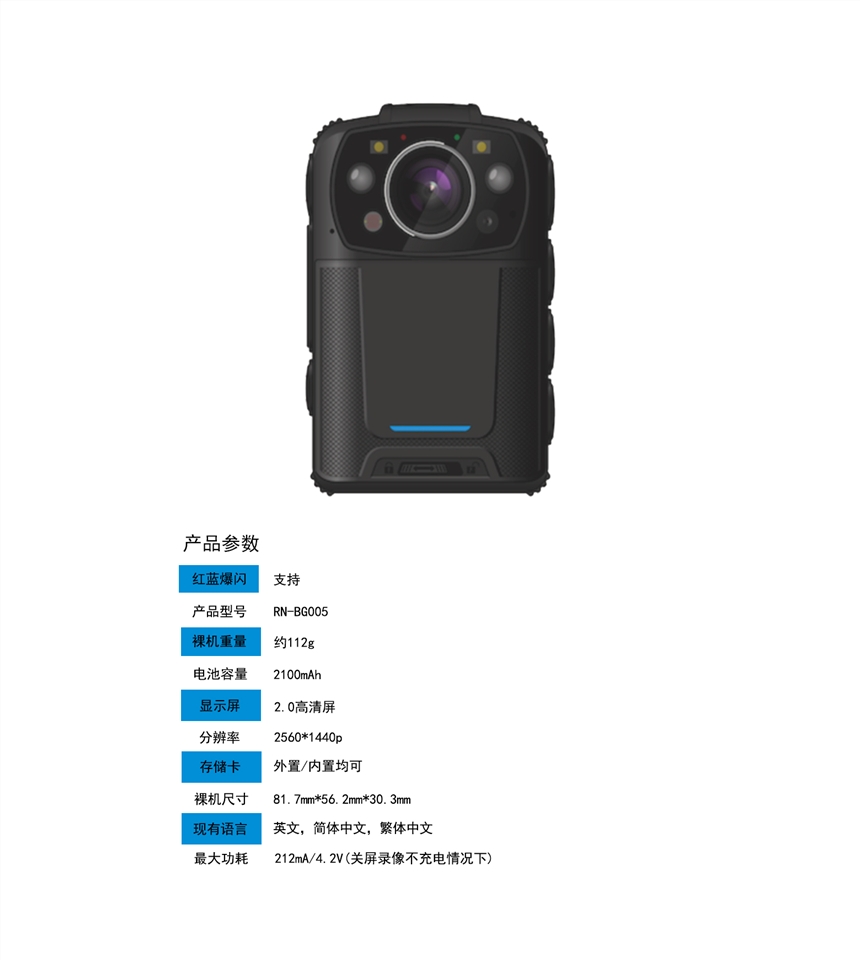 高清摄录 视频分辨率达2560*1440P 持久续航 2100mAh大容量电池持久续航 轻巧便携 裸机重量112g,无负重感 支持多语言