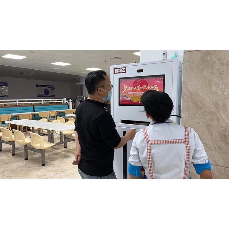 显示方式 21.5寸电容触摸液晶屏(1920*1080),可实时动态显示餐盘余量;可实时显示体温,就餐记录可查询导出,高温预警不出盘;可显示就餐人员信息;可按餐别实时动态统计用餐数据;可查询离线数据;可按部门、按设备查询用餐数据明细和汇总;可采集面部信息、挂失、补卡、发卡等;可远程自动升级;支持多媒体播放;设备使用保养信息展示及提醒