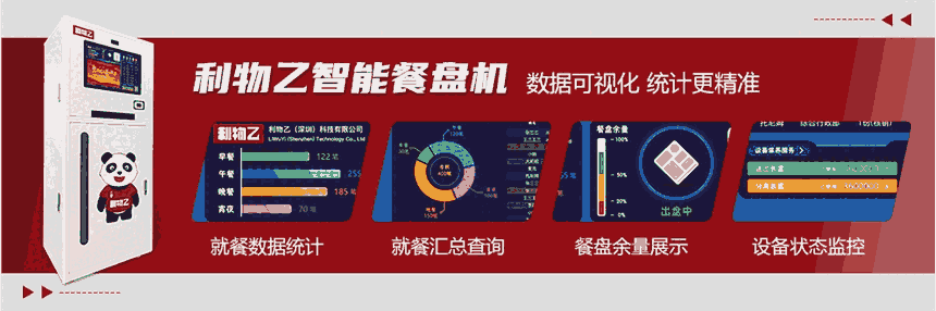 使用利物乙智能餐盘消毒柜系统主要作用是在降低人工工作量的同时,节省支付环节的核算时间,提升就餐效率。而硬件上,利物乙餐盘发放机不仅可为就餐员工打造便捷的自助就餐体验,还可替代食堂人工发放餐盘方式,解放人力降低成本,后台收费系统具备电子化台账、出入库记录、餐具使用频等功能,实现餐具与领用人相匹配,建立分布式消毒烘干机制,切实提高餐具安全管理水平,构建“无人职守”的新型智能化餐具消毒柜。 为食堂带来了全新的管理模式。
