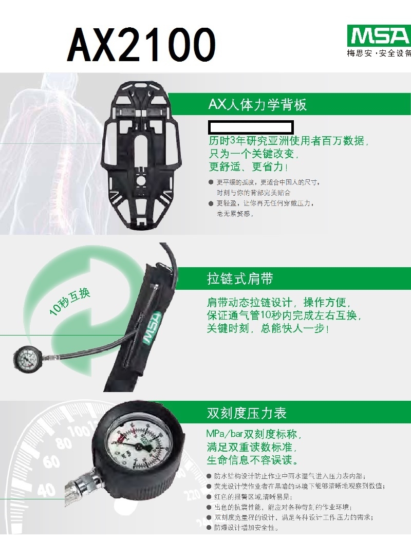 自给式空气呼吸器特点: