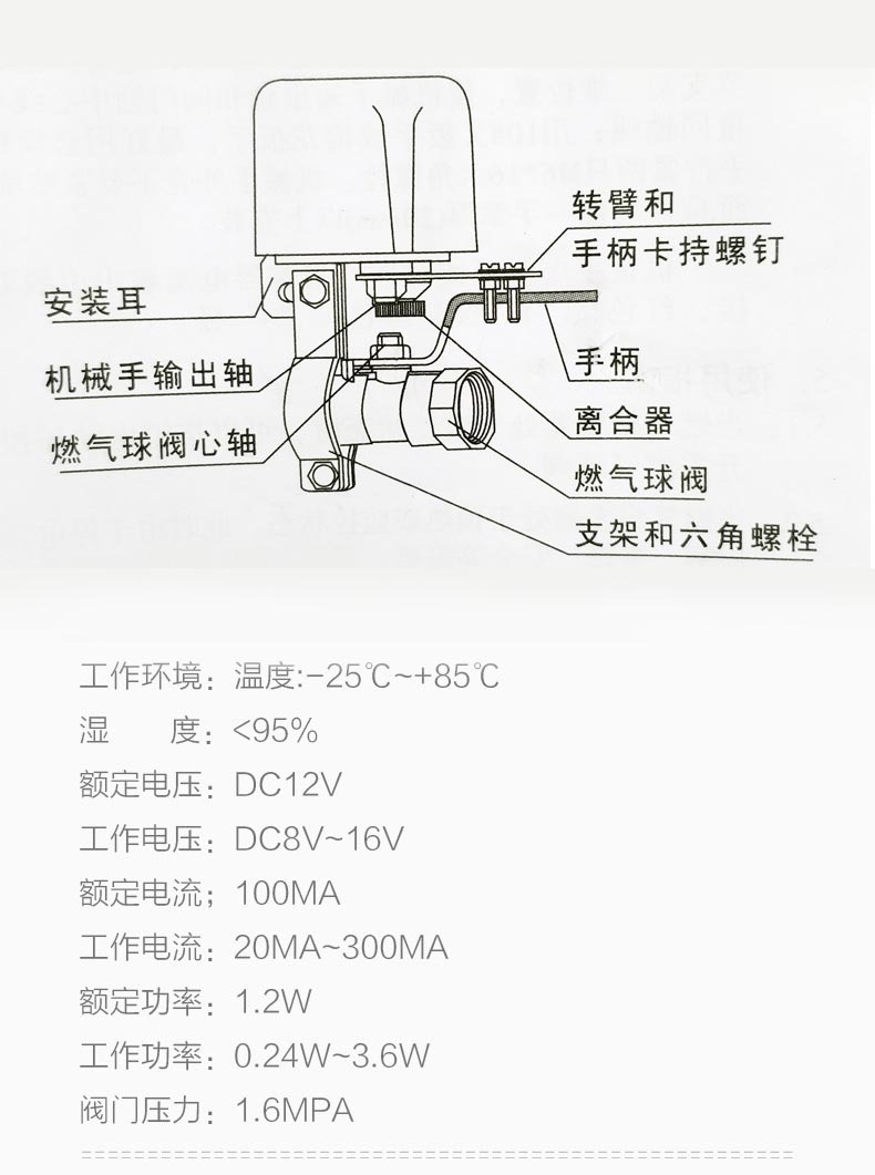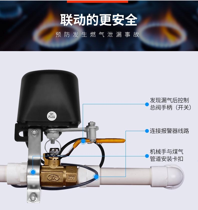 安全性,采用直流或交流12v安全电压,自动关阀动作快捷可靠,报警时自动关闭途虎总阀,砌底切断电源,高度安全C采用绝缘密封阻燃外壳,抗无线,电干扰特别采用专利技术的电动,手动转换礼盒器,使机械手能自动及按钮开关,在停电维修时可以手动开关阀门,倍增安全,
