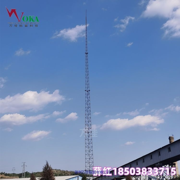 避雷塔材料可采用圆钢、角钢、钢管、单根钢管等,高度范围10米—60米。郑州万佳防雷有限公司的避雷塔包括:GH钢管杆避雷塔、GFW避雷线塔、GJT三柱圆钢避雷塔、GFL四柱角钢避雷塔、钢架构龙门架、装饰塔等。