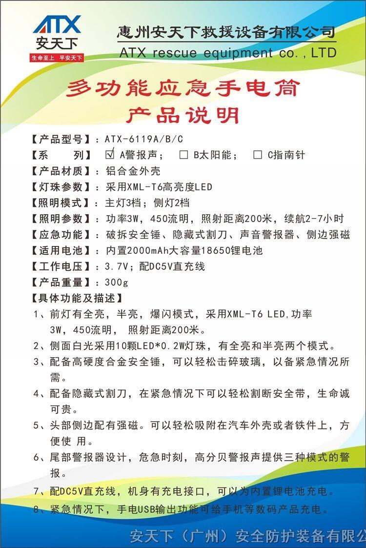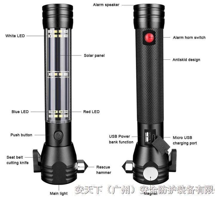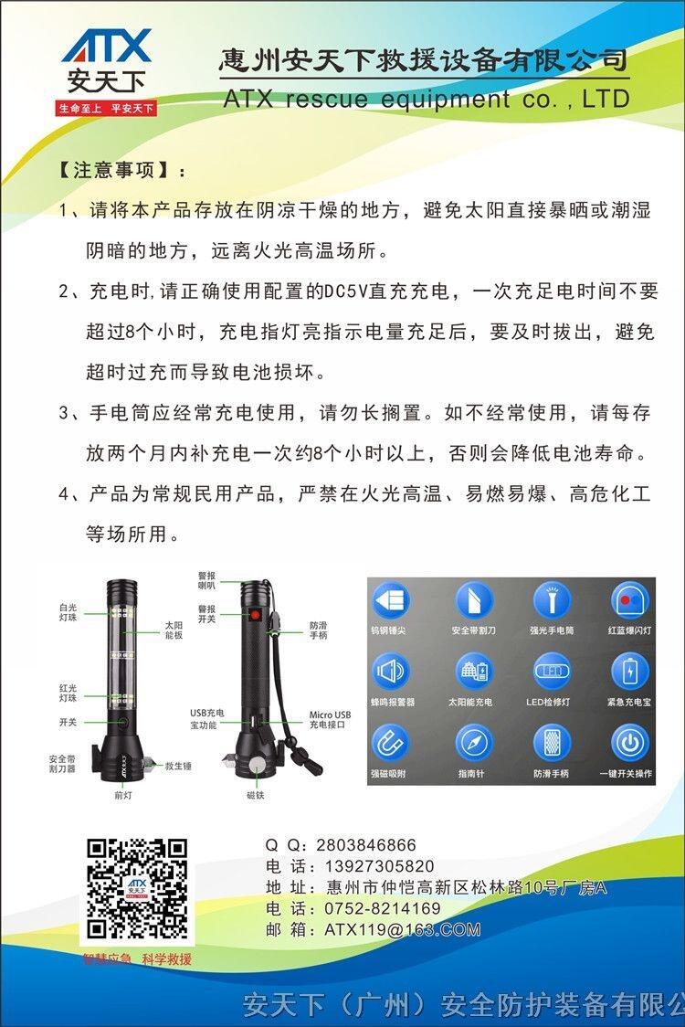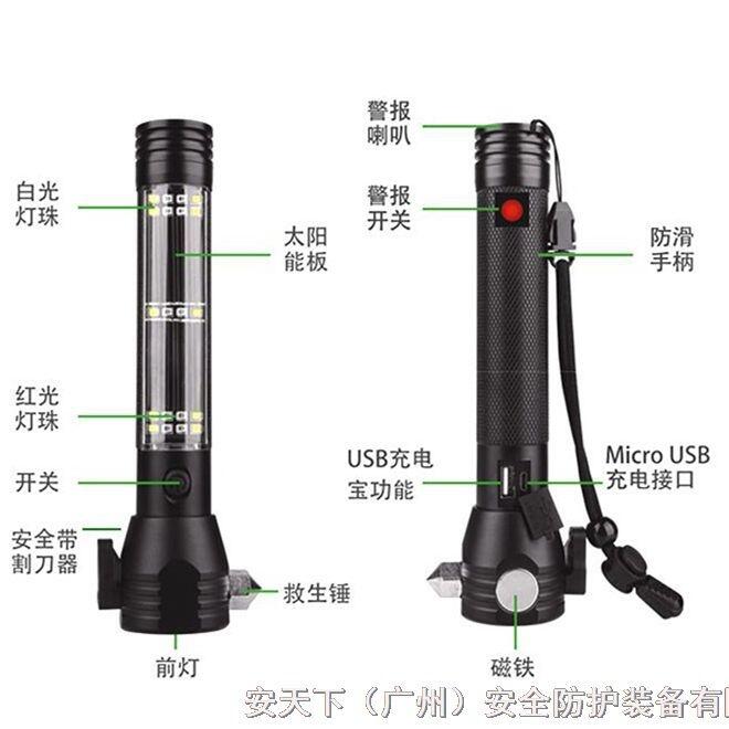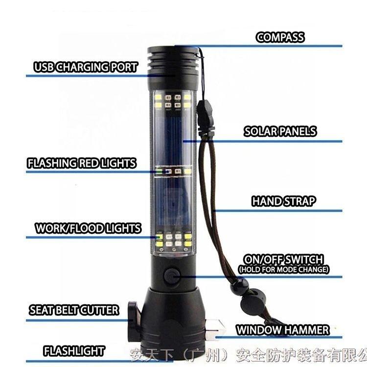 安天下多功能手电筒应急防水太阳能防灾便携手电