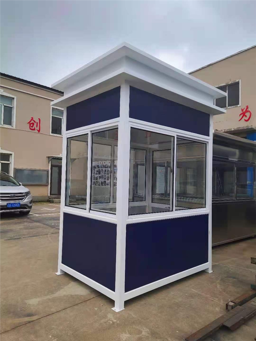 4,活动岗亭:是一种以轻钢为骨架,以夹芯板为围护材料,以标准模数系列进行空间合,构件采用螺栓连接,全新概念的环保经济型活动岗亭