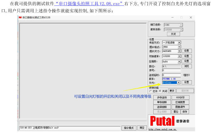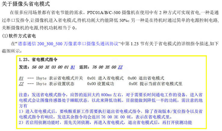 请参考“谱泰通信200_300_500万像素串口摄像头通讯协议V1.13.pdf” |