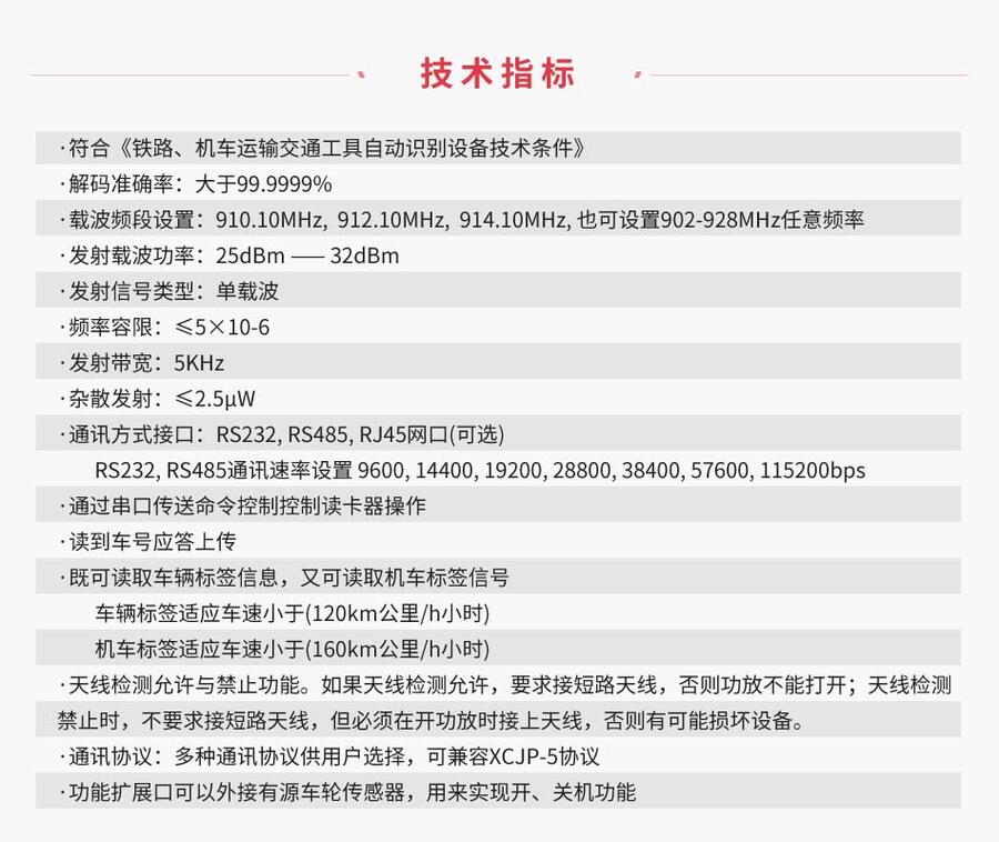 能够读取铁路上所有类型的标签(机车标签,车辆标签,客车标签);