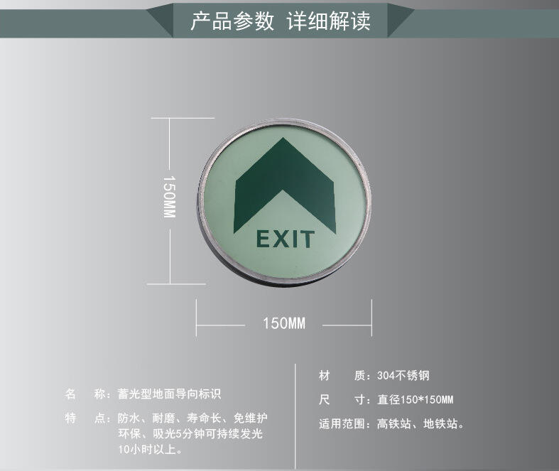 慧海牌夜光钢化玻璃地贴表面耐腐蚀,耐磨损,耐高温。使用安装方便,坚固耐用,美观大方,绿色节能,无污染,是理想的照明辅助材料之一。产品表面吸光10-20分钟可持续发光12个小时以上,无需电源,可反复循环使用,深受广大客户的好评!相信该产品将是新一代消防指示标志的潮流和趋势!