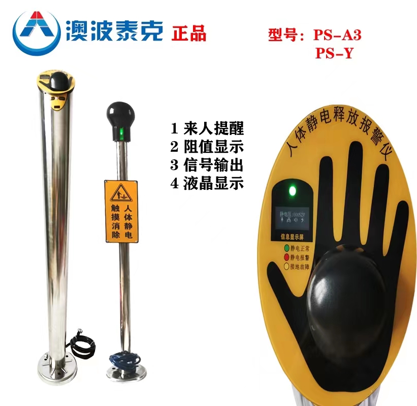 澳波泰克人体静电释放报警仪,用于解决石油化工危险场所中操作人员作业静电安全问题,在导除静电的同时检测人体电压,当电压值高于150V时,发出声光报警提示。其触摸球采用静电亚导体材质,不会产生电火花,目前已普遍替代了传统的不锈钢导静电产品。