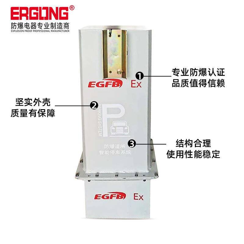 EGDZ-智能防爆道闸,内部采用无刷道闸产品,本产品是一种典型的机电一体化产品,其以体积小、防爆性能好、噪音低、、调速广、稳态转速误差小等特点。四代减速箱,道闸,多速比可选择,运行平稳,定制齿轮传动效率更高,稳定性高,采用新模具设计技术,钢材折弯焊接成形,无刷控制调速技术,左右可快捷互换,无离合设计,质量更加可靠,使用更加方便,机芯采用齿轮传动速度快、弧形曲臂三连杆结构,起落杆快速平稳。维护方便、使用寿命长。