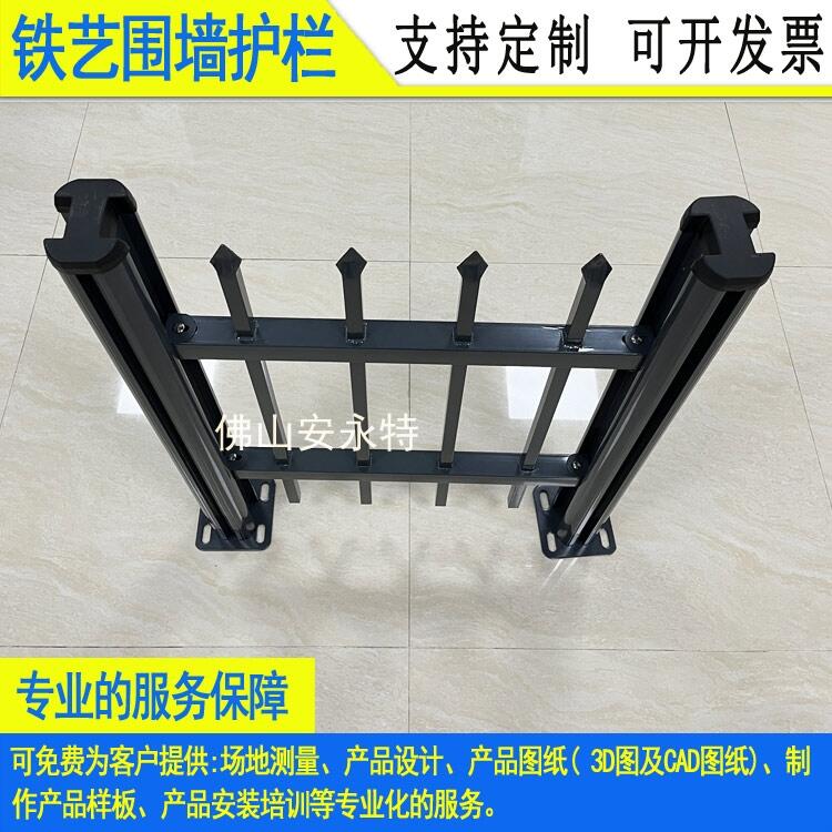 Black construction site railing in stock, Shanwei school, reinforced zinc steel railing, customized fence for Dongguan Shatian factory area