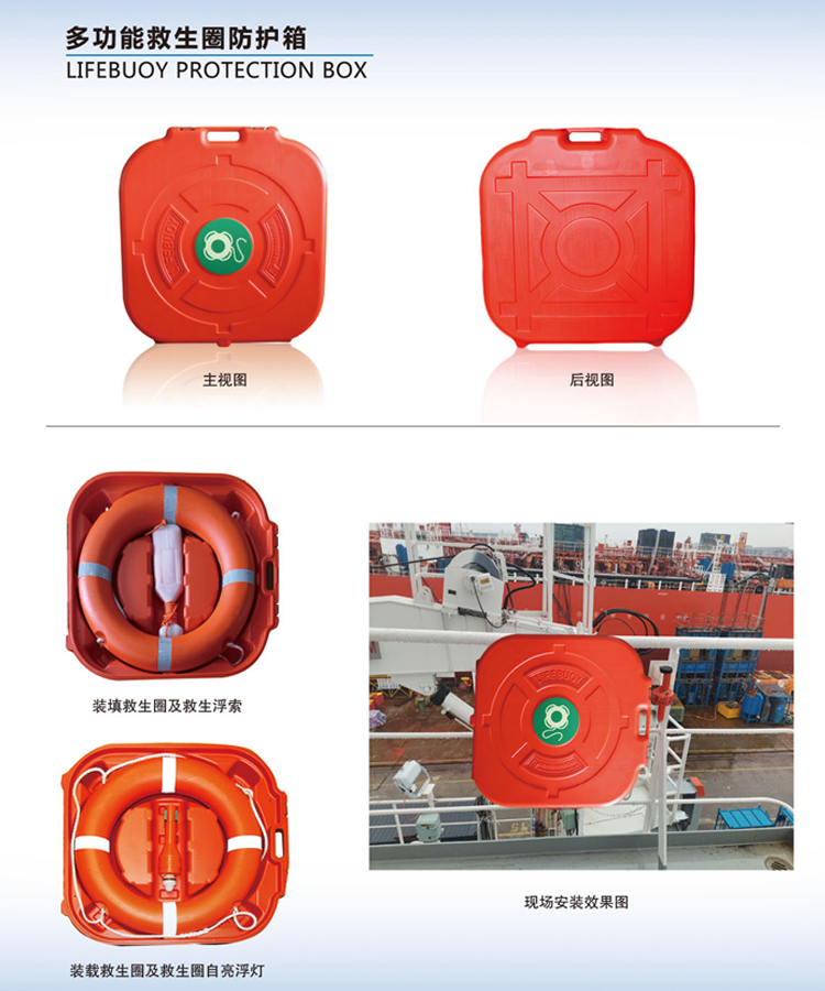 救生圈防护箱介绍:由高质量的树脂和玻璃纤维毡复合而成,是船用救生圈的专用存放箱,耐腐蚀、抗老化 轻质、高强、抗冲击防火、耐高温、不易变形、表面不易退色、外型美观。