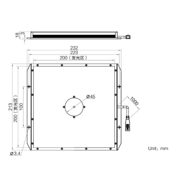 MV-LBES-H-200-200-R 红色 ≥ 9000 lux@200 mm 232 mm × 213 mm × 18 mm 200 mm × 200 mm ? 45 mm 0.8 kg 34 W 24 VDC SMR-03V-B