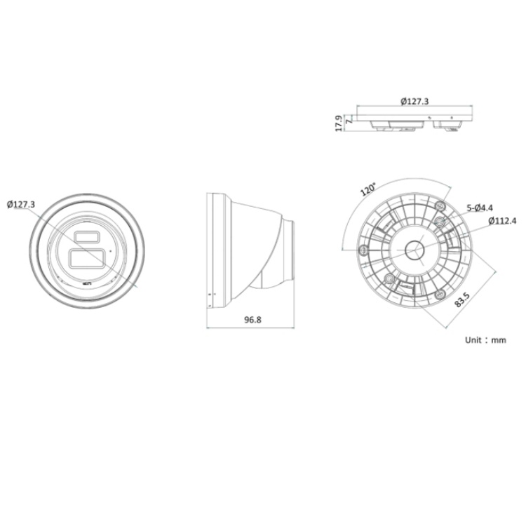 焦距&视场角 2.8 mm,水平视场角:104°,垂直视场角:55°,对角视场角:127°