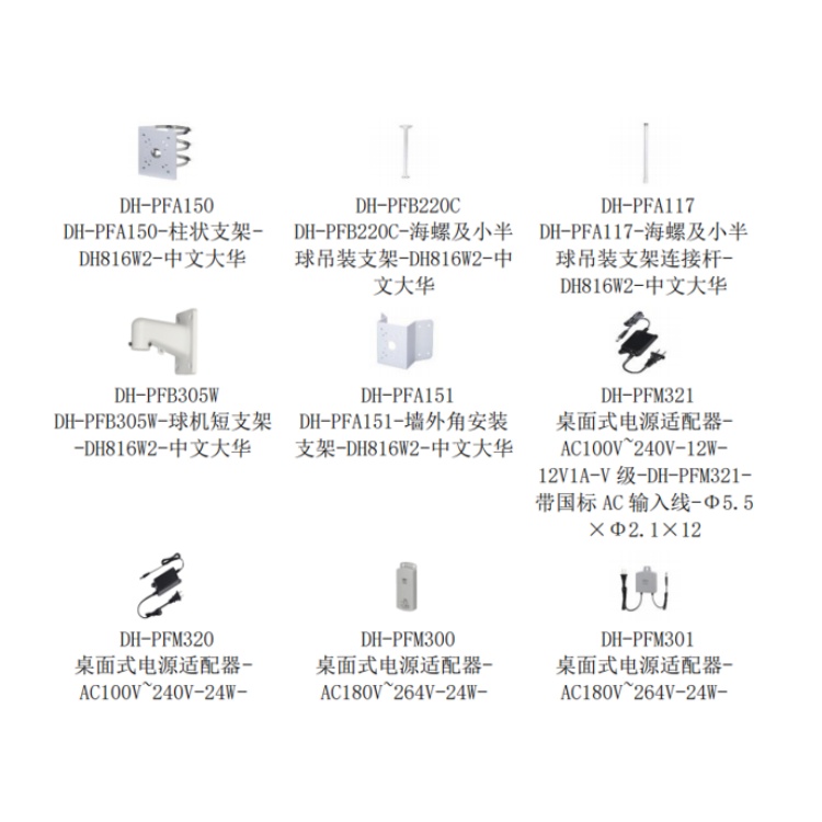 DH-IPC-HDBW5443R1-YL-PV-SA 大华400万1/2.7英寸CMOS双光人车警戒定焦防的暴半球网络摄像机 配件: