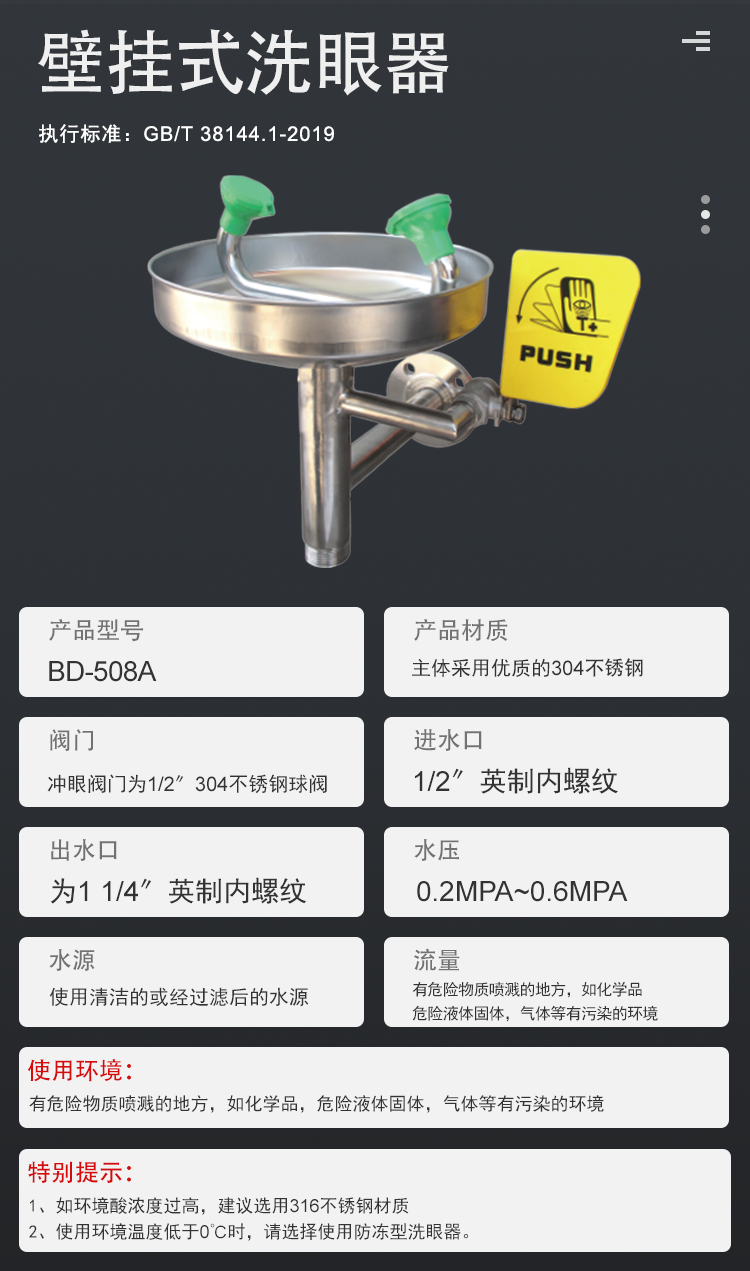 贝迪BRADY壁挂式洗眼器BD-508A可定制