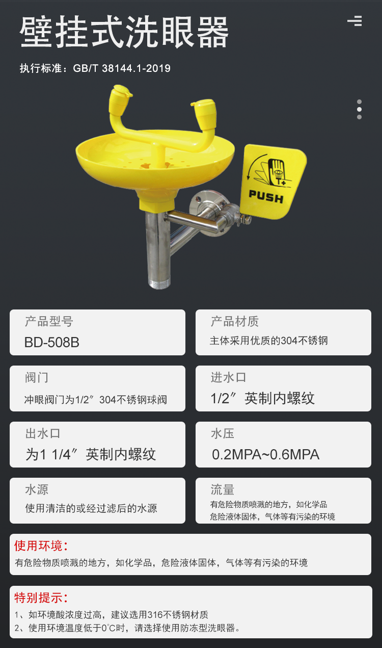贝迪BRADY双牛角ABS盆壁挂式洗眼器BD-508B价格可议