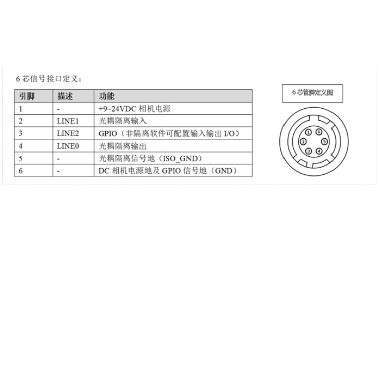 AH3600CG010 华睿AH系列600万像素1/1.8英寸CMOS卷帘快门19fps千兆以太网口小面阵黑白工业相机 接口定义: