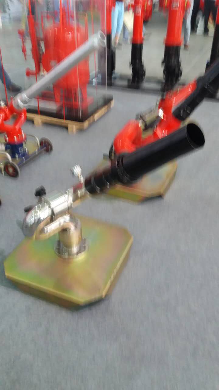 移动式消防水炮 移动式泡沫/水两用炮?该移动式消防炮主要由移动地盘、拖把、进水管、回转体、炮头等机构组成; 配有两个直径65进水口; 在同一压力下,水炮的流量可调整,并可实施直流至90度水雾射流的无级调节,起到更好的灭火降温效果; 具有很好的灭火性能。 它可根据火场情况喷出雾状细小水滴也可喷射直流水柱.流量可按需要在30-50L/S的范围调节.操作灵活,方便、简单、炮身可作水平、俯仰回转并可实现自锁等功能,有利于操作人员撤离火场实现无人喷射.该炮具有流量可调射程远,功能多,体积小,性能好的特点。