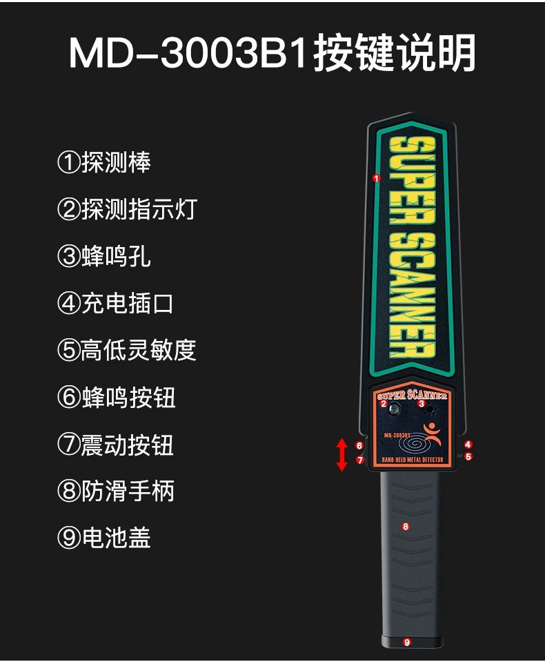手持金属探测器/金属探测仪/车站码头学校考试专用安检仪厂家直销MD3003B1
