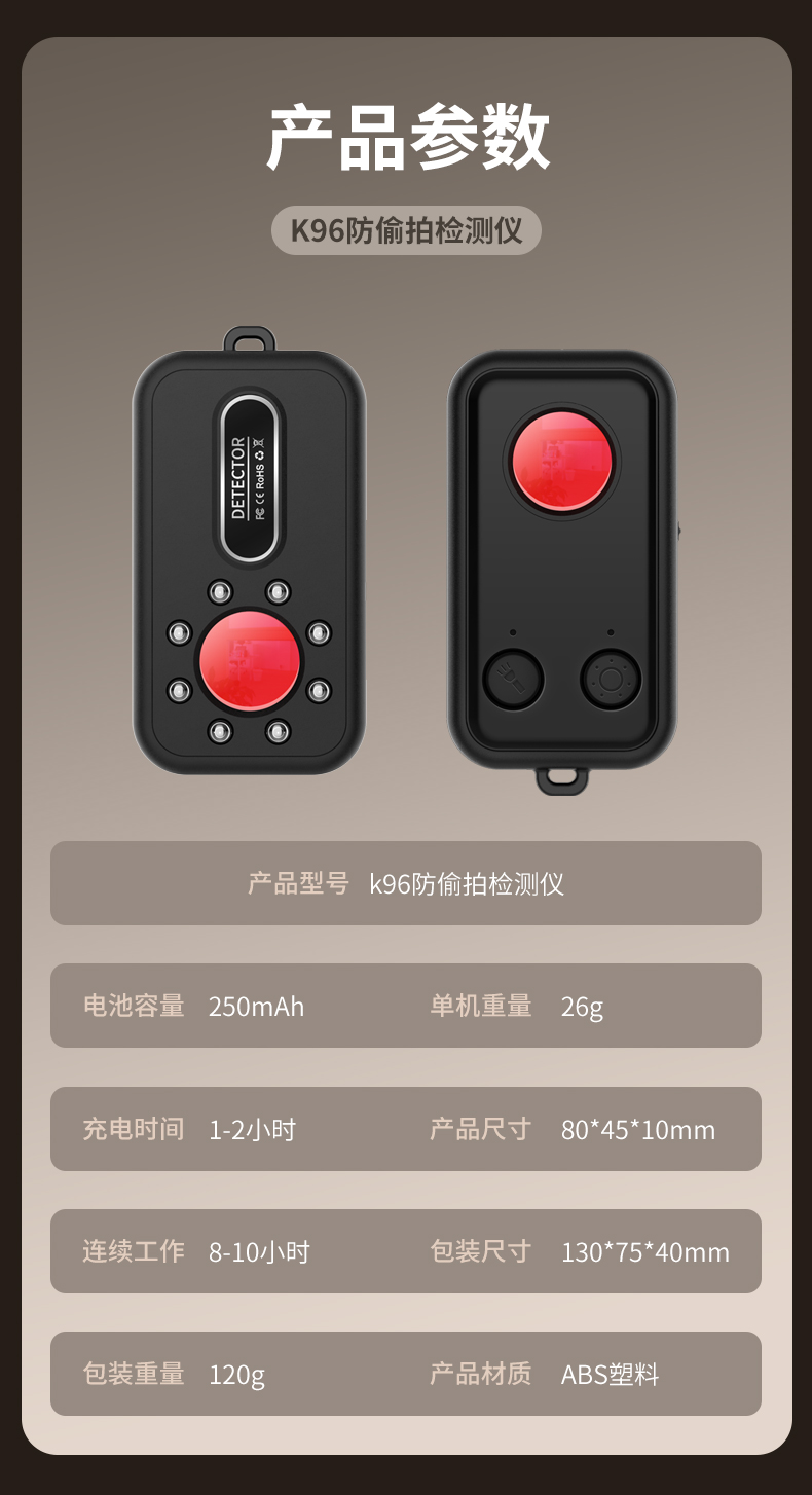 gps信号探测器摄像头红外线智能检测仪防监控反偷拍酒店防窥K96