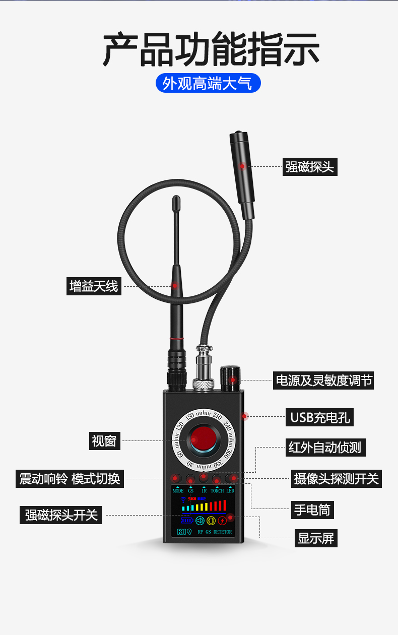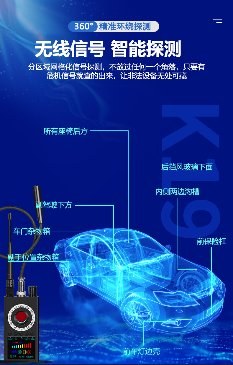 无线信号探测器K19+红外摄像头自动扫描防偷拍反监控防偷听