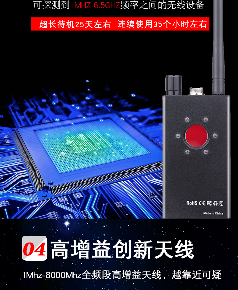 k18探测器酒店防偷拍防偷听无线信号探测仪gps防定位探测器