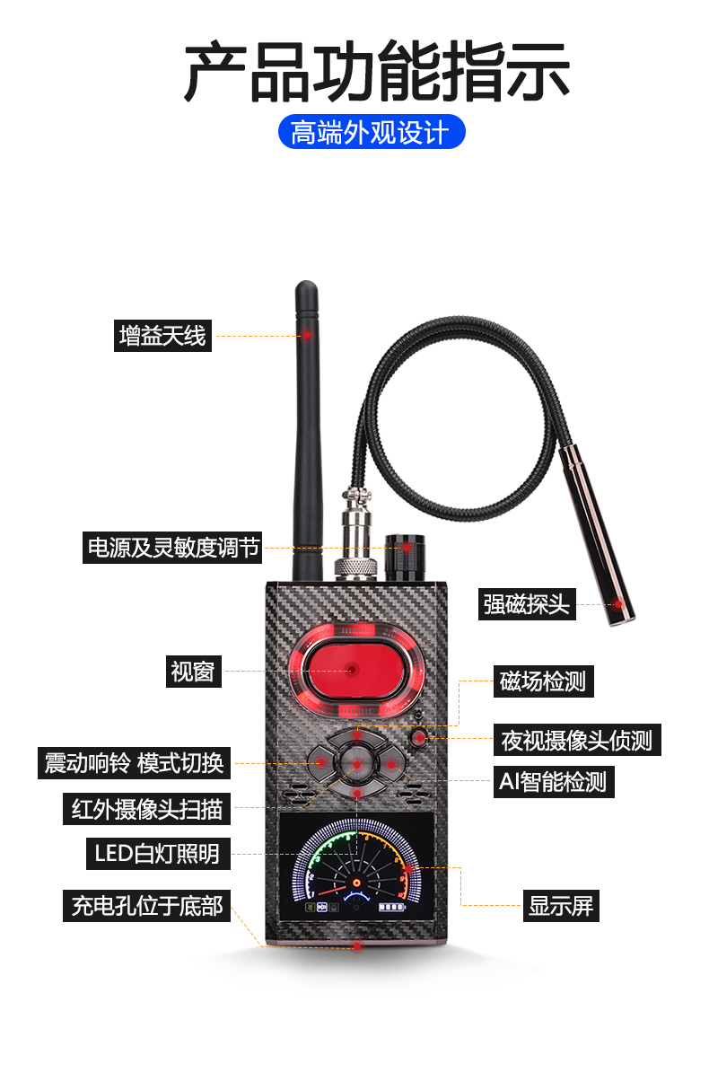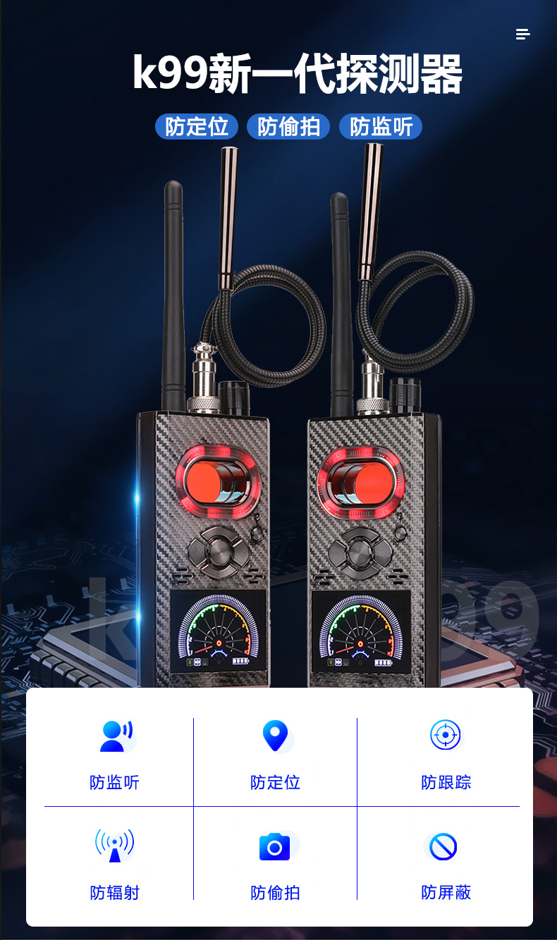 信号探测器GPS防定位跟踪扫描检测仪反偷听酒店摄像头防偷拍K99