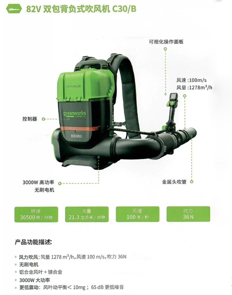 greenworks格力博BB361双肩背负式风力灭火吹风机