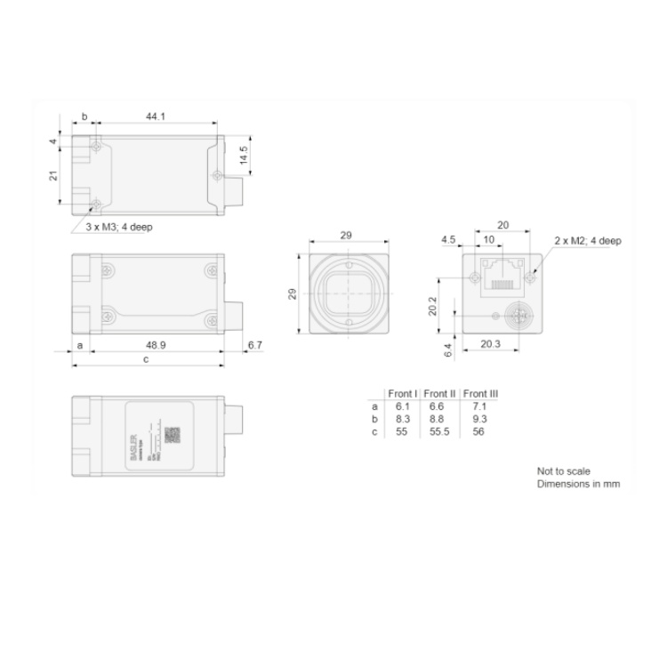 a2A2048-37gcBAS Basler a2A2048-37gcBAS GigE相机搭载Sony(索尼)IMX900 CMOS芯片,可在320万像素的分辨率下提供37 fps的帧速率 产品尺寸图: