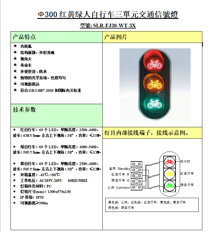 Ф300红黄绿人自行车三单元信号灯-非机动车信号灯