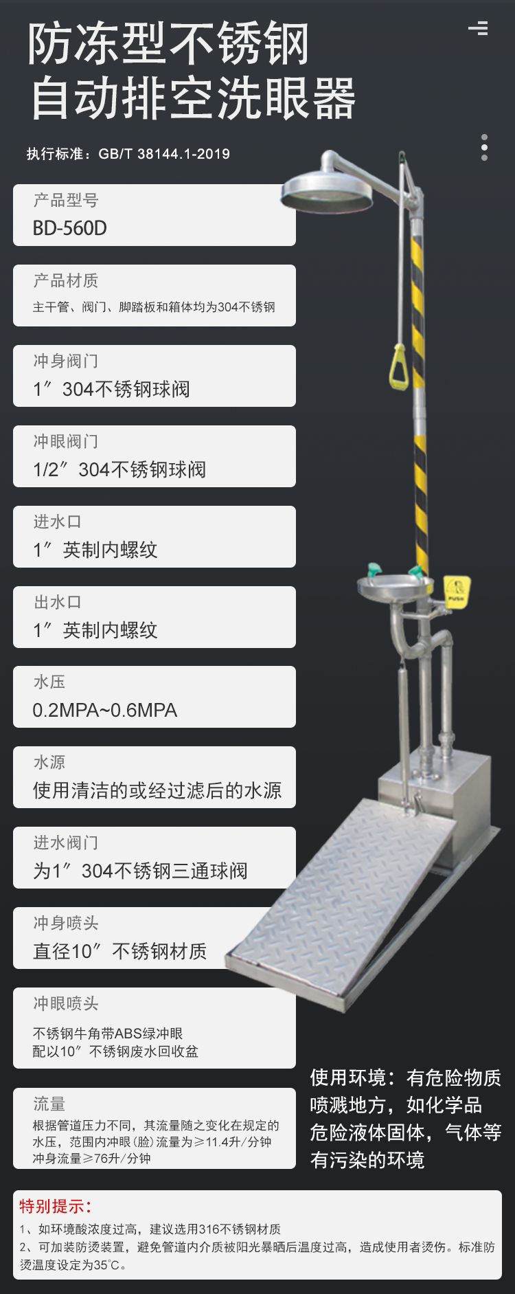 贝迪BRADY防冻型不锈钢自动排空复合式洗眼器BD-560D可定制