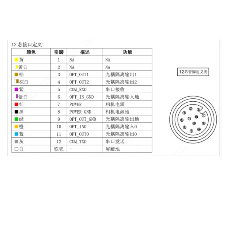 DH-MV-SI5500MG002 华睿科技X86系列500万像素2/3英寸CMOS全局快门35fps内嵌MVP算法平台软件千兆工业以太网接口黑白智能相机 接口定义: