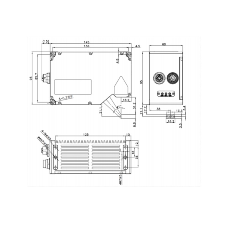 DL5020B 华睿科技高精度三维测量IP67千兆网口3D激光轮廓传感器 3D检测相机 结构尺寸图(mm):