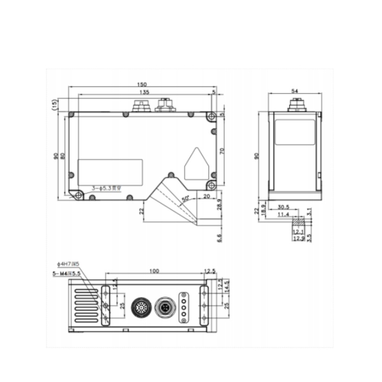 DL3020B 华睿科技千兆以太网口传输配套视觉软件平台快速部署内嵌航空插头3D激光轮廓传感器 3D工业检测相机 结构尺寸图(mm):