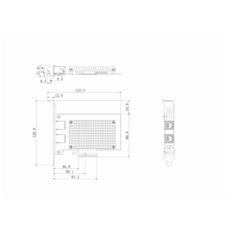 GT-6G20 杭州华睿科技2路接口PCIe供电万兆网口工业相机用采集卡 结构尺寸图(mm):
