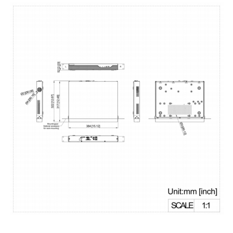 机箱尺寸 384mm(宽)×315mm(深)×52mm(高)
