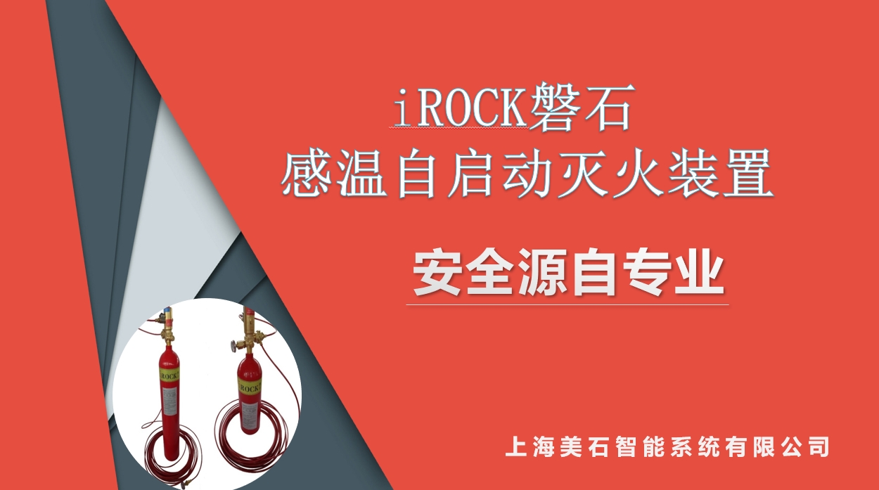上海美石智能系统有限公司研发制造的iROCK磬石系列感温自启动灭火系统设备分两大系列九个规格品种,先后通过"国家固定灭火系统和耐火构件质量监督检验中心"的检测机构认可。