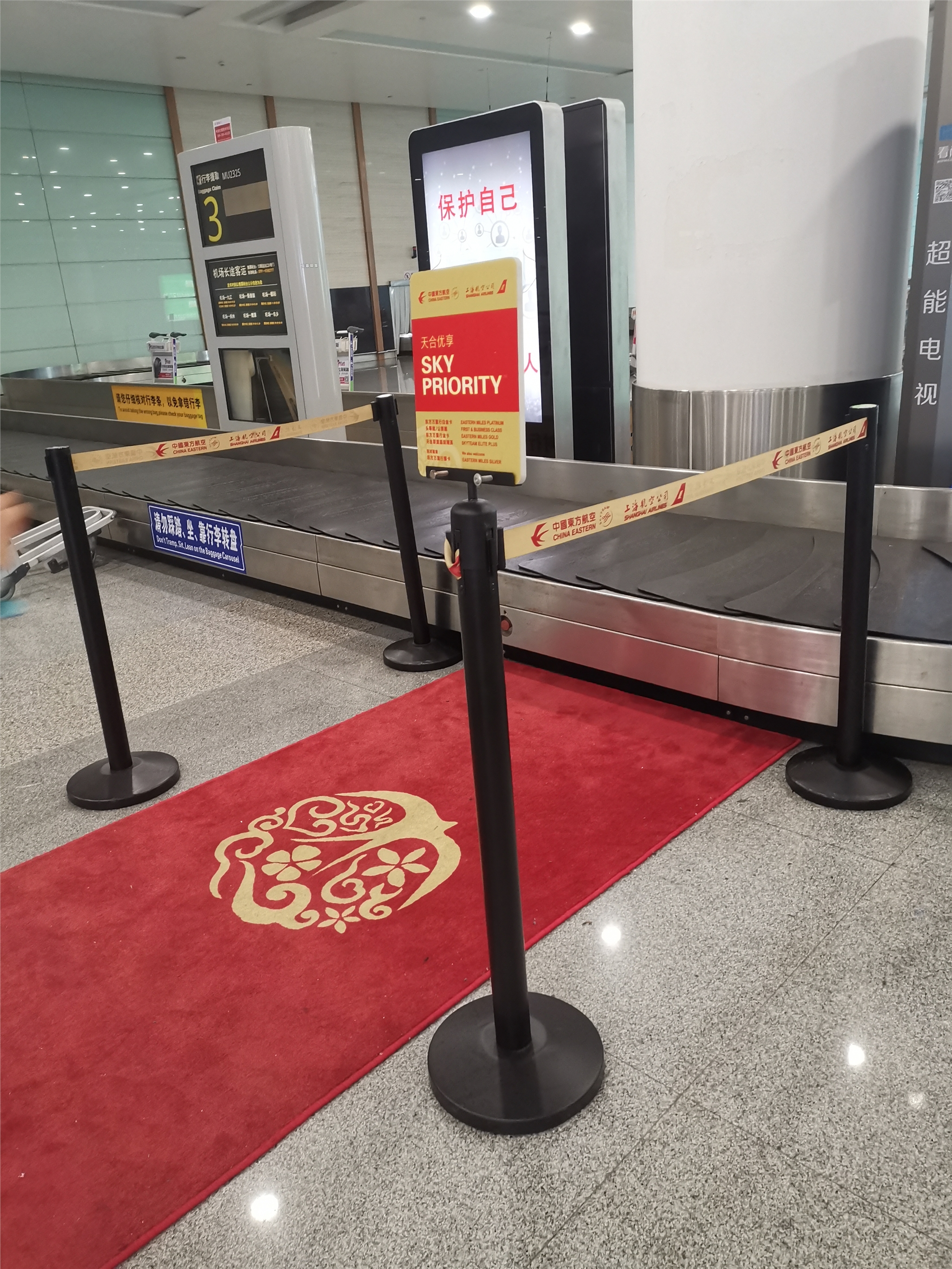 六、一趟飞行下来,下机提行李时,行李提取处也有清楚的一米线栏杆座指引,隔离带上还印有“行李提取”等字样。如此清晰明了的提示指引,让旅行者轻松穿梭于机场中。