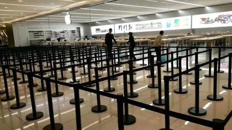 三、当您过安检的时候会发现这里的排队一米线栏杆座最多,不同安检口前都摆放着Z字折叠型的栏杆座通道,并且入口处的一米线栏杆座上还配套指示牌,提示对应的几号安检口。这里的排队栏杆座有些选用双层隔离带,即上下两层带子,并且印有“安全检查”等字样。这里摆放双层的原因是防止小孩在排队安检时从带子下面穿梭到另外一条通道中去,同时还是预防有意插队的旅客。这里的隔离栏杆座像勇敢的战士守卫着最重要的一道安全。