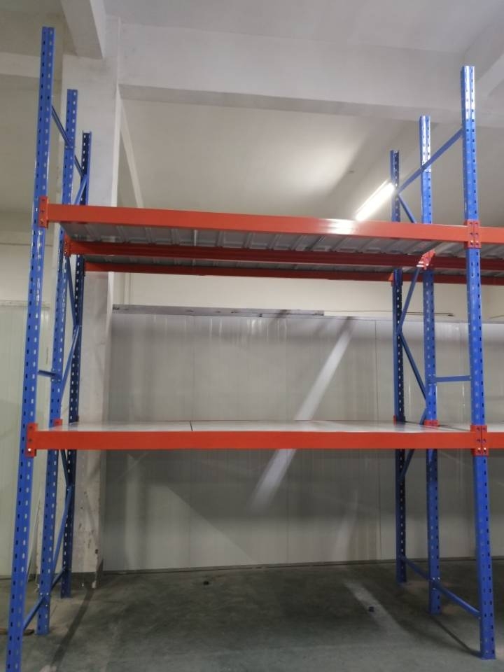 采用横梁与立柱相结合的结构形式,单层随重可达1-3吨,可存放托盘,也可配置层板使用,货架可自由拆装,调距为75mm。