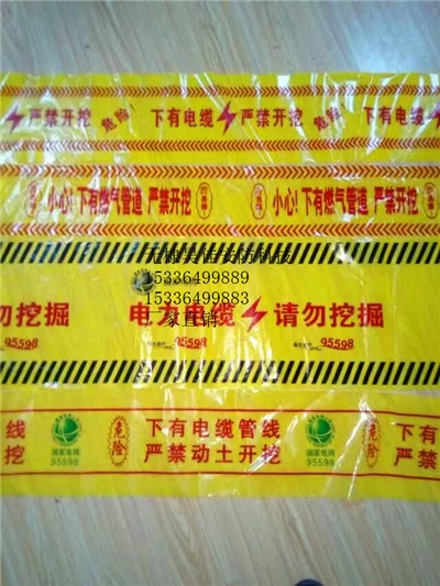 我公司专业生产各用户所需的多种规格电力地埋式警示带、燃气管道地埋式警示带、编织布地埋警示带,并具有使用方便、粘性强、耐候性好,等特点,深受广大用户欢迎,各项性能指标均达到或超过产品行业标准。