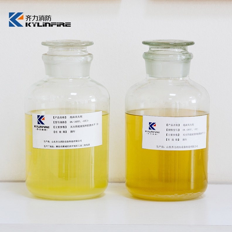 AFFF-3%、6%型水成膜泡沫灭火剂由氟表面活性剂、氟氢表面活性剂、溶剂、稳定剂等多组份配合而成,是一种新型、高效的灭火剂。其特点是在油类表面上能形成一层抑制油类蒸发的防护膜,靠泡沫和防护膜的双重作用,灭火效率高、速度快、防复燃性能和封闭性能好,PC存期长。该灭火剂与水按3:97或6:94的比例混合,可以在各种低倍数泡沫产生设备中发泡,扑救油类火灾;可以与干粉灭火剂联用灭火,亦可采用“液下喷射”的方式扑救大型油类贮罐火灾。
