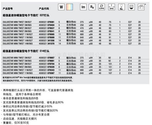 欧司朗 827/865 E27/E1超值星11W迷你螺旋节能灯