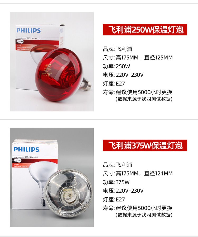 高校实验室加热烘干用飞利浦250W黄光红外灯泡配国产可调光灯架加粗电线加大灯罩