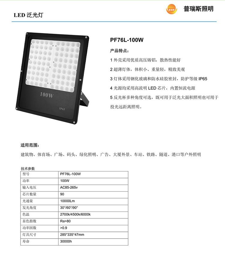型号 | PF76L-100W | ||